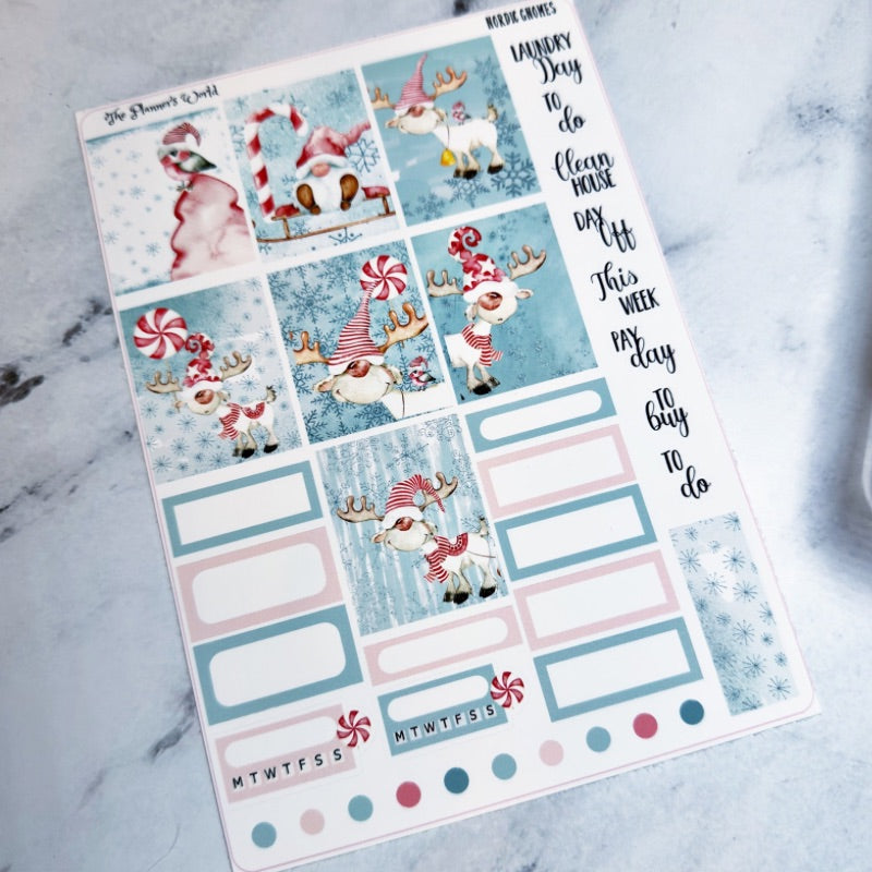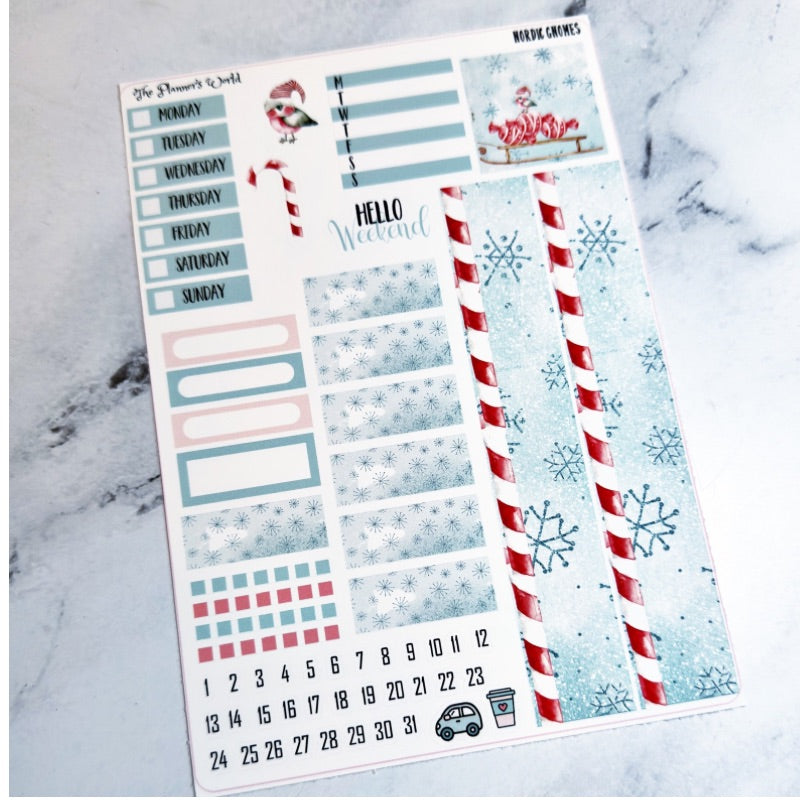 This listing is for a two piece Hobonichi Cousin sticker kit, Nordic Gnomes. This kit would be great for use in your planner for the month of December!