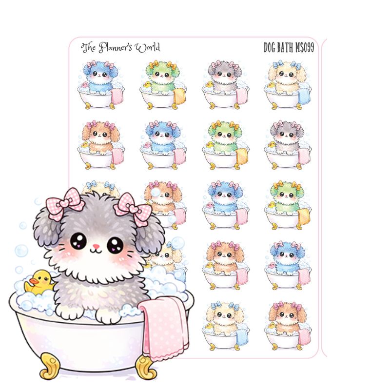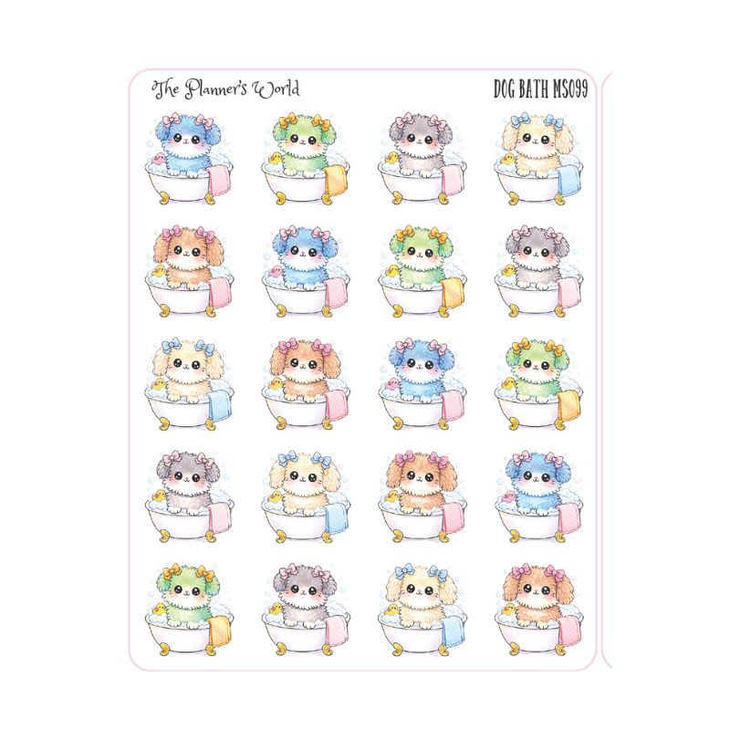 This listing is for one sheet of bath time for puppy planner stickers.